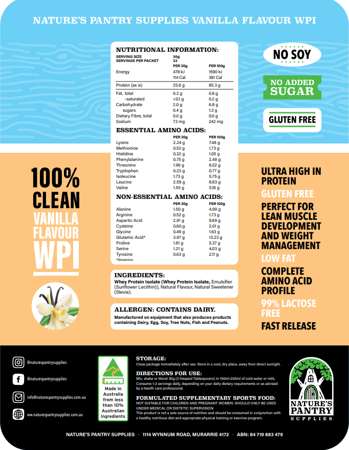 Elevate your nutrition with the clean, natural goodness of Nature’s Pantry Vanilla WPI—because you deserve the best!