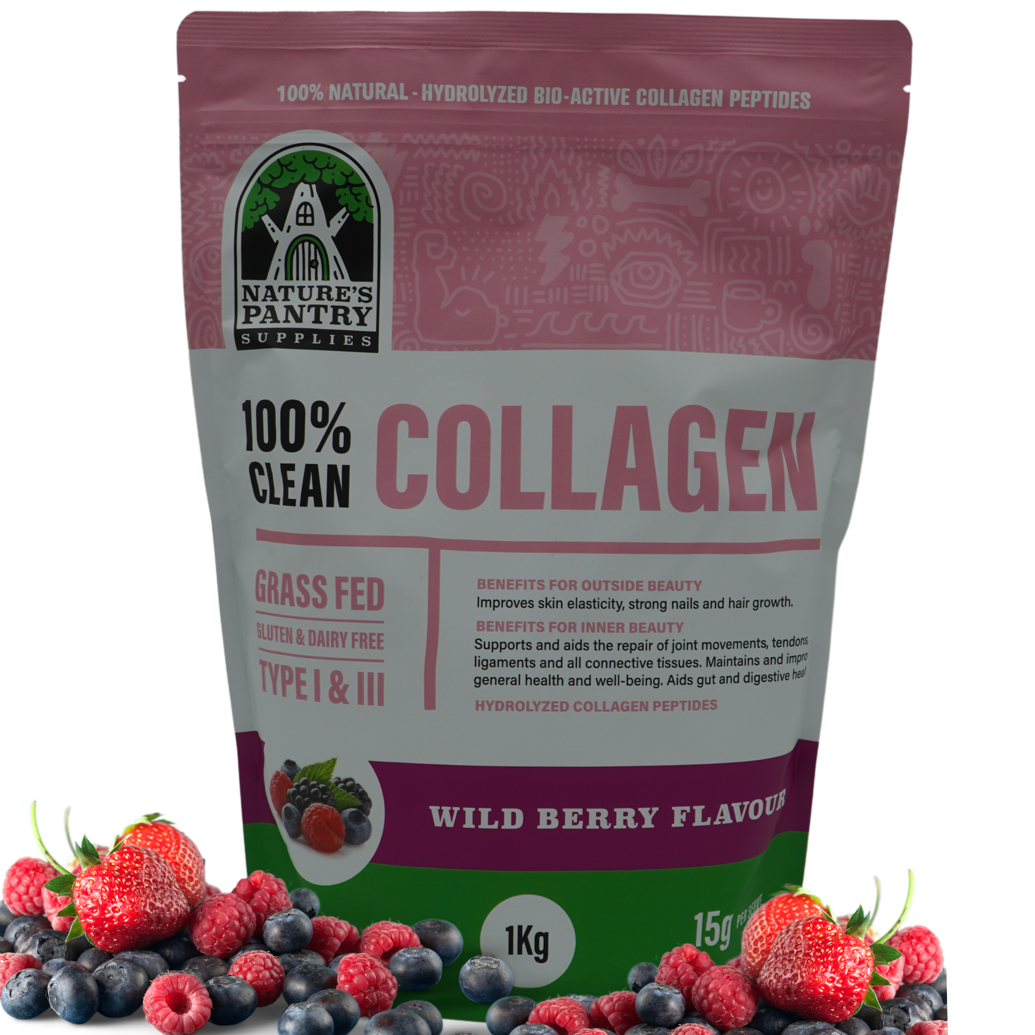 Nature’s Pantry Bio-Active Hydrolyzed Collagen Peptides – Wild Berry is a clean, flavoured collagen protein powder designed for everyday enjoyment.