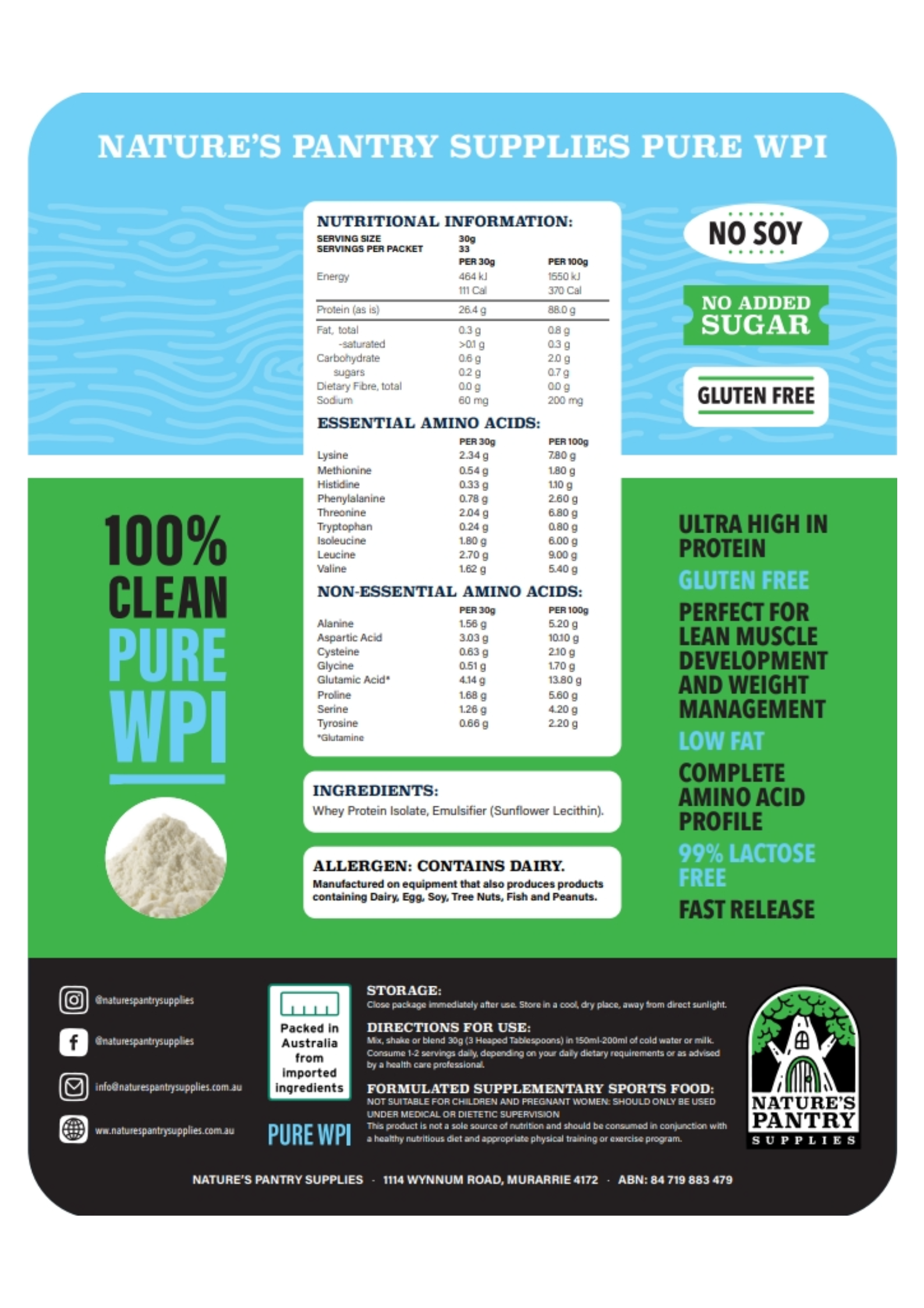 Nature’s Pantry 100% Clean Whey Protein Isolate is a premium, unflavoured protein powder designed to support your active lifestyle and everyday nutrition goals.